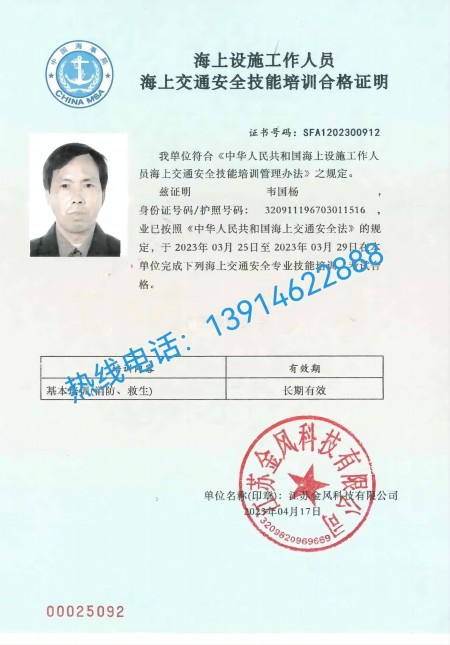 海上風電防腐必須具有海上作業四小證高處作業證